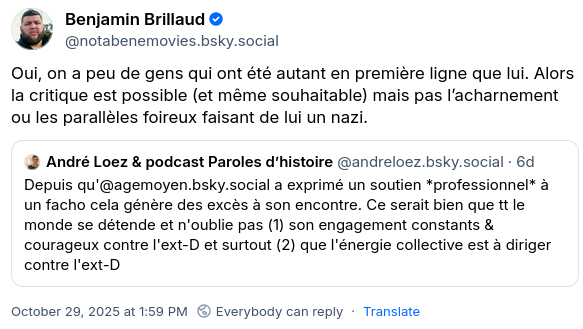 Mon esprit taquin me fera Ă©galement ajouter un autre commentaire : « l’extrĂŞme droite ne joue pas le jeu du dĂ©bat » est justement… ce contre quoi les zĂ©tĂ©ticiens se battent. Encore une fois, la chasse aux sophismes plus ou moins subtils, personnellement ça ne m’amuse pas (dĂ©jĂ parce que je n’arrive pas Ă en retenir les noms), mais il faut reconnaĂ®tre qu’à minima, ceux-ci tentent de dĂ©cortiquer les discours et les arguments, avec Ă©videmment leurs propres biais (dont celui de neutralitĂ©, je sais). Y’a un truc Ă creuser, lĂ .